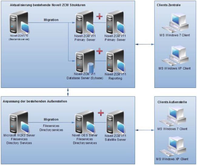 - Bereitstellung einer Clientmanagement-Umgebung auf Basis von Novell ZENworks Configuration Management (ZCM),